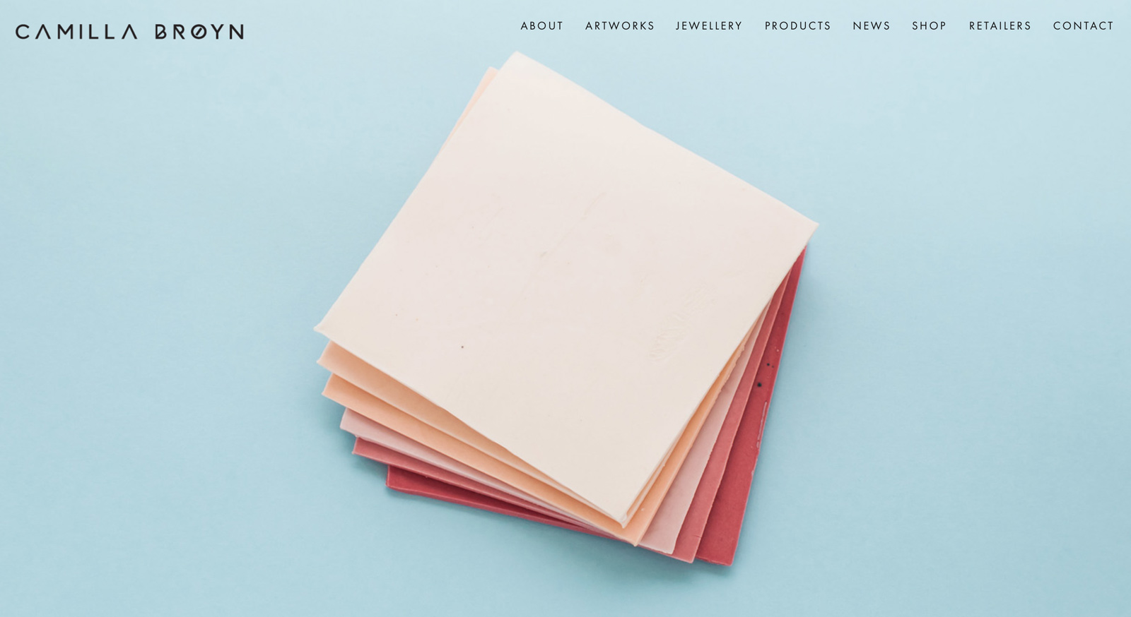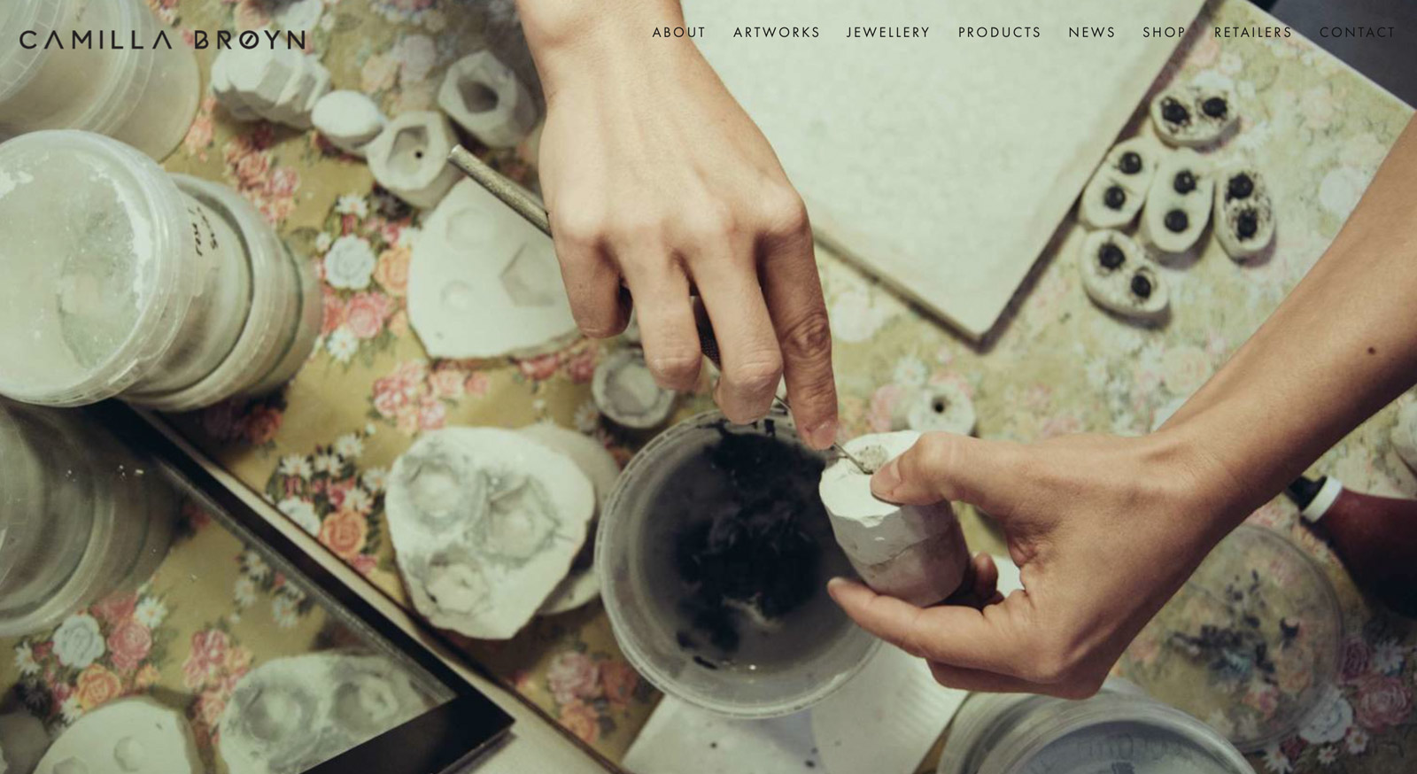 Pale Grain created a simple logotype out of a custom designed font which was later applied on business cards, product labels and packaging. To give the best overview of Camilla’s works, the entire project was built up by photographs; the main idea was to centre the website around the production process and the final products.