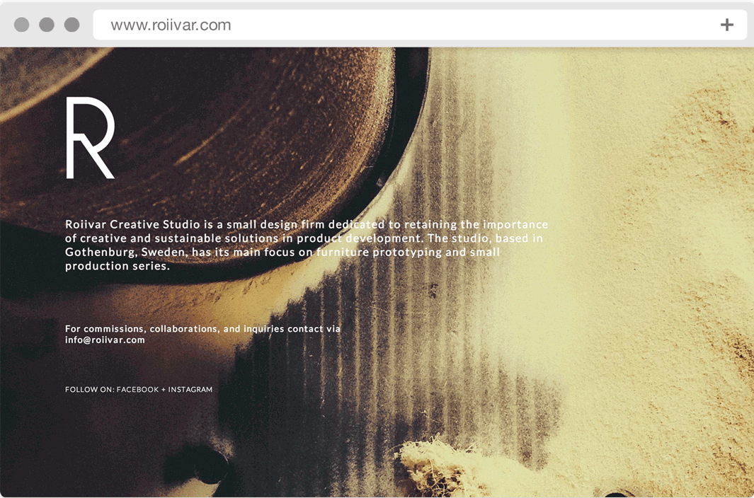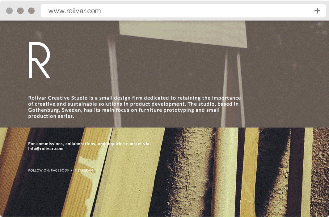 Roiivar Creative Studio is a young design firm based in Gothenburg, Sweden. Its main focus is on furniture prototyping and small production series.